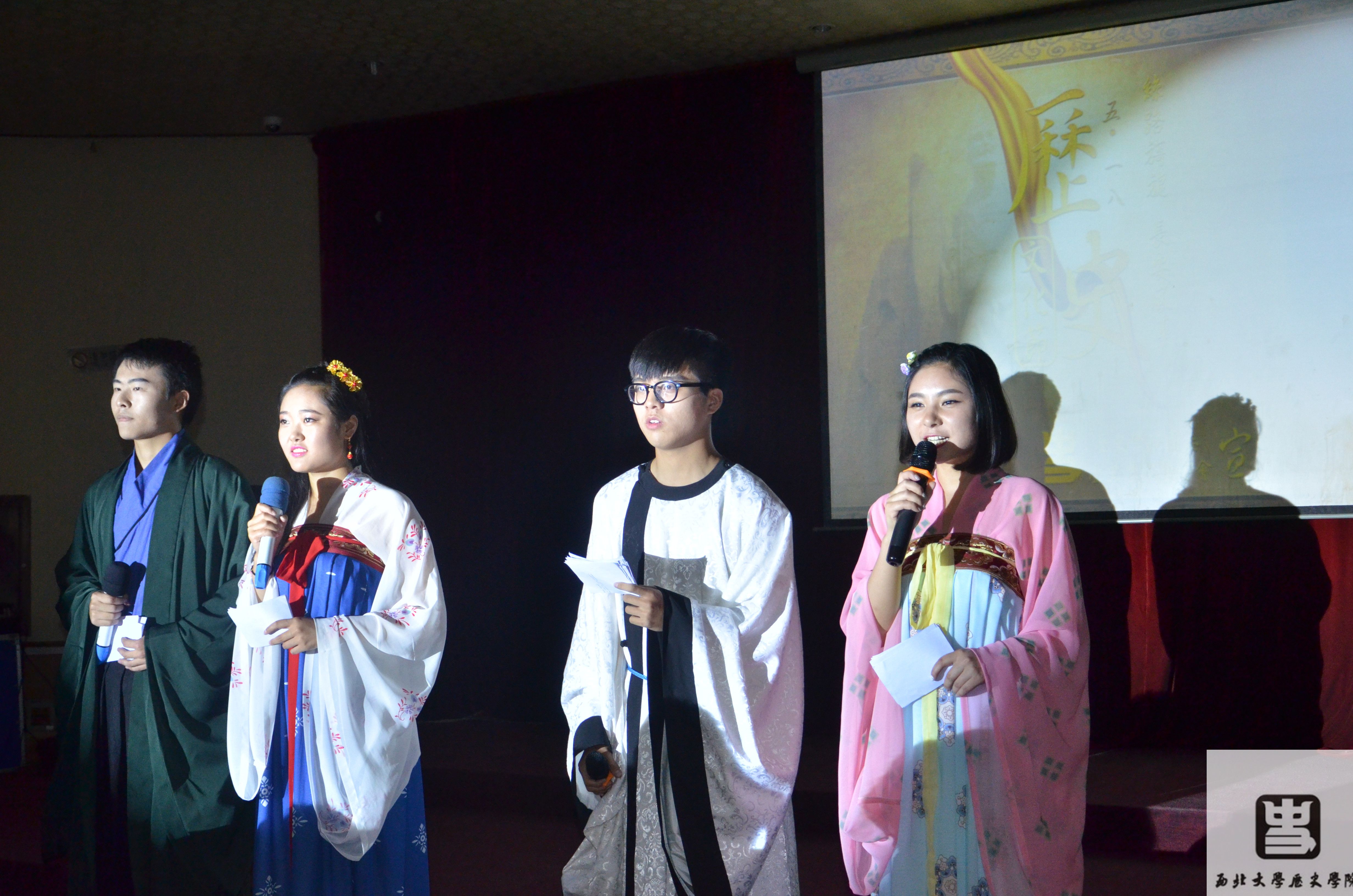 为庆祝2014年6月22日,由中哈吉三国联合申报的丝绸之路“长安—天山廊道网”成功申报世界文化遗产,我院此次特以“丝路旖旎,长安风华”为主题,举办5.18历史文化节。在掌声雷动中,5.18历史文化节闭幕晚会以一支古典舞开场,之后还有歌曲《丝路》、古筝表演《北方有佳人》、话剧《凿空西域》、新疆民歌弹唱、书韵、西域舞蹈串烧、唐长安情景剧、古筝表演《春江花月夜》、歌曲《龙文》、诗经吟诵、古典舞蹈《雅乐寻踪》等精彩节目,不断将晚会气氛推向高潮。最后,晚会在由西北大学776net必赢官网 “爱渡”志愿者团体集体演唱的《贞观长歌》中落下了帷幕。其中话剧《凿空西域》以张骞出使西域为背景,结合史料,加上同学们精湛的演技,真实有力地反应出西汉初期张骞为联合大月氏夹击匈奴而出使西域这一史称“凿空西域”的历史事件,赢得了观众的阵阵喝彩。表演期间,776net必赢官网还特地推出“微信墙”互动平台,加强了观众的参与度,为晚会增添了许多乐趣。