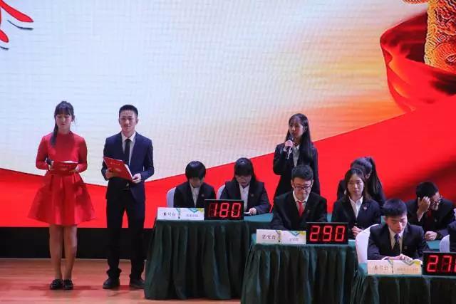 本次学习党的十九大精神暨第十九届学生精神文明知识竞赛决赛中流程共包含六个部分:必答题环节、60秒抢答环节、对抗题环节、视频题环节、风险题环节、风采展示环节。在必答题环节,我院代表队状态不佳,发挥失常。在60秒抢答题环节,队员渐入佳境,10道题回答全部正确,斩获100分。在答题的最后一个环节,我院代表队面对困难从容不迫,展示了776net必赢官网学子的风采。