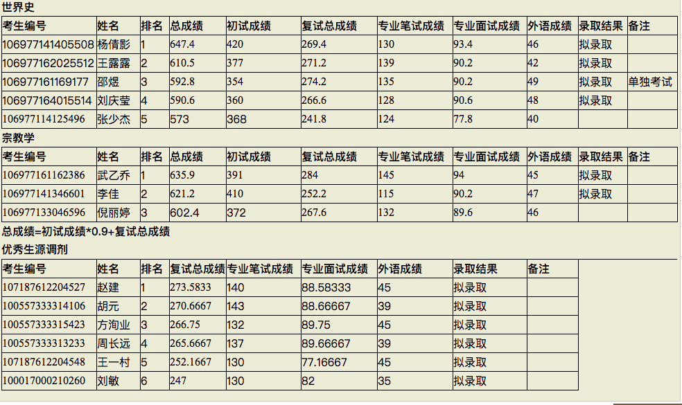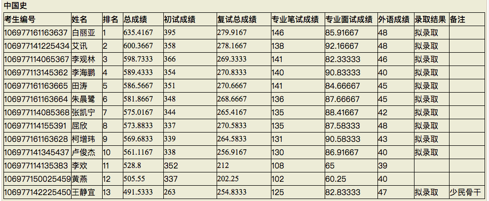 根据《西北大学2017年硕士研究生复试录取工作通知》的精神,我院于2017年3月21-23日组织了硕士研究生复试录取工作。现将拟录取结果公示,公示时间为3月24日—4月2日10天。公示期间若有异议,可以实名书面形式向我院复试工作领导小组反映,逾期不再受理。最终录取名单以西北大学研究生院公布为准。