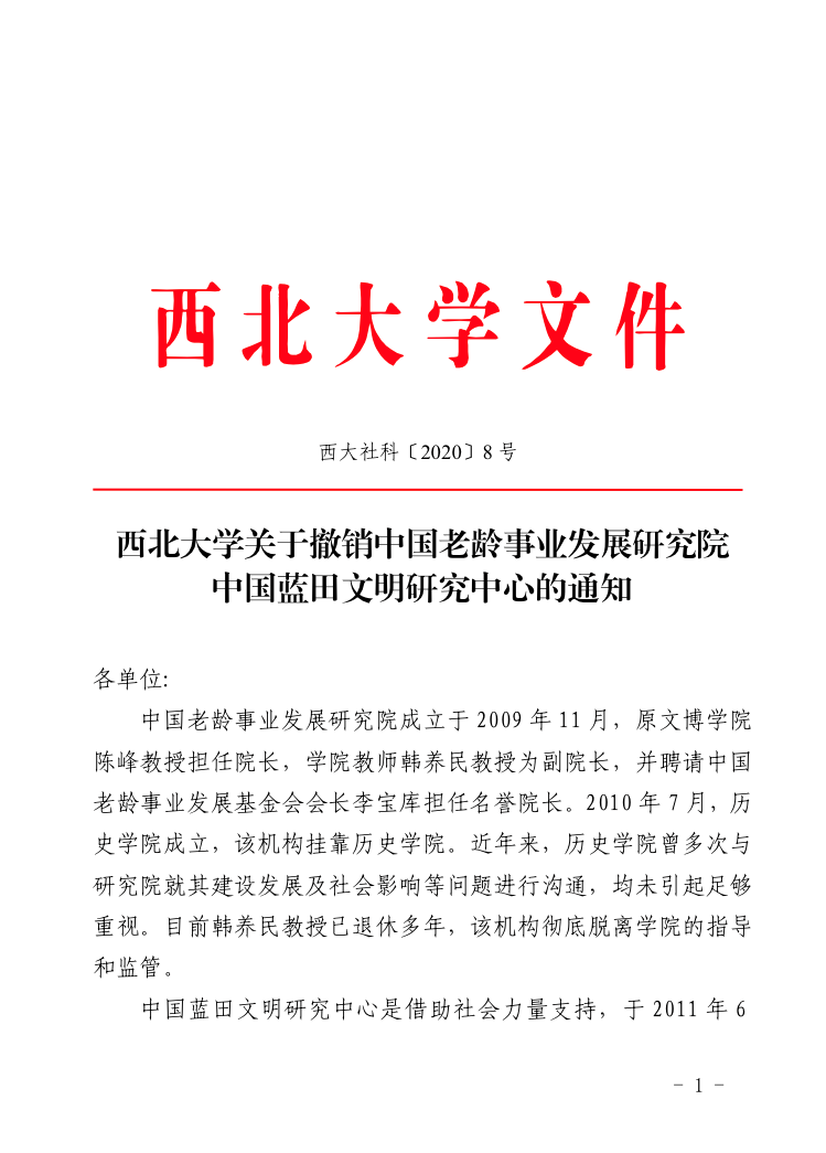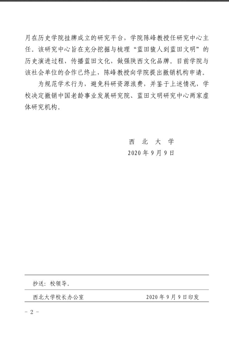 经我院申请,学校批准。从即日起,撤销学院下设中国老龄事业发展研究院、中国蓝田文明研究中心两虚体机构。