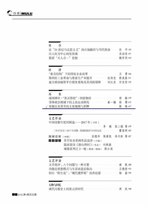 近日,我院陈峰教授发表在《光明日报》“理论·史学”版的文章《宋朝官员晋升的主要规则与积弊》被《新华文摘》2018年第7期全文转载。